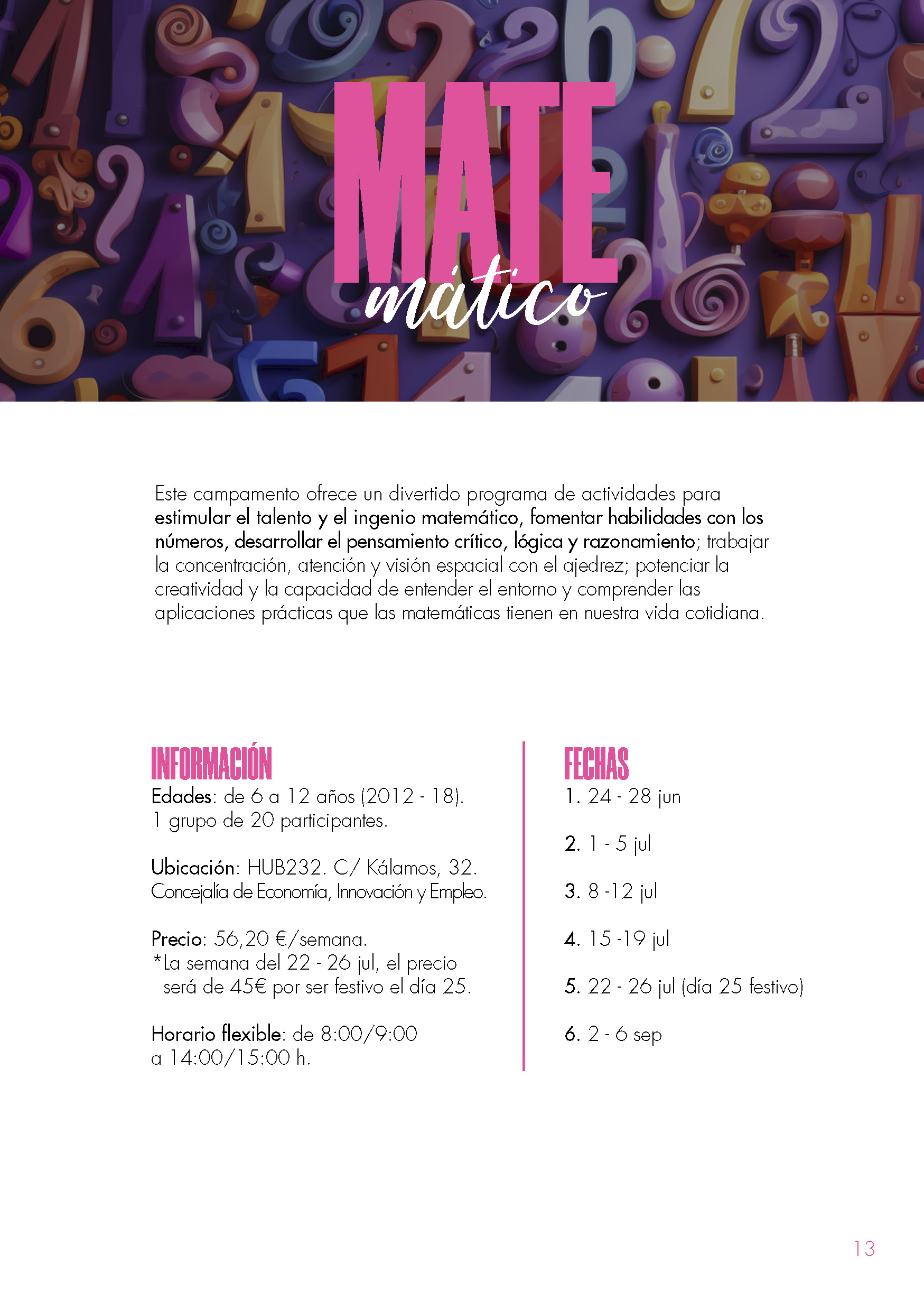 • Concejalía Innovación y Educación. HUB232. C/ Kálamos, 32.