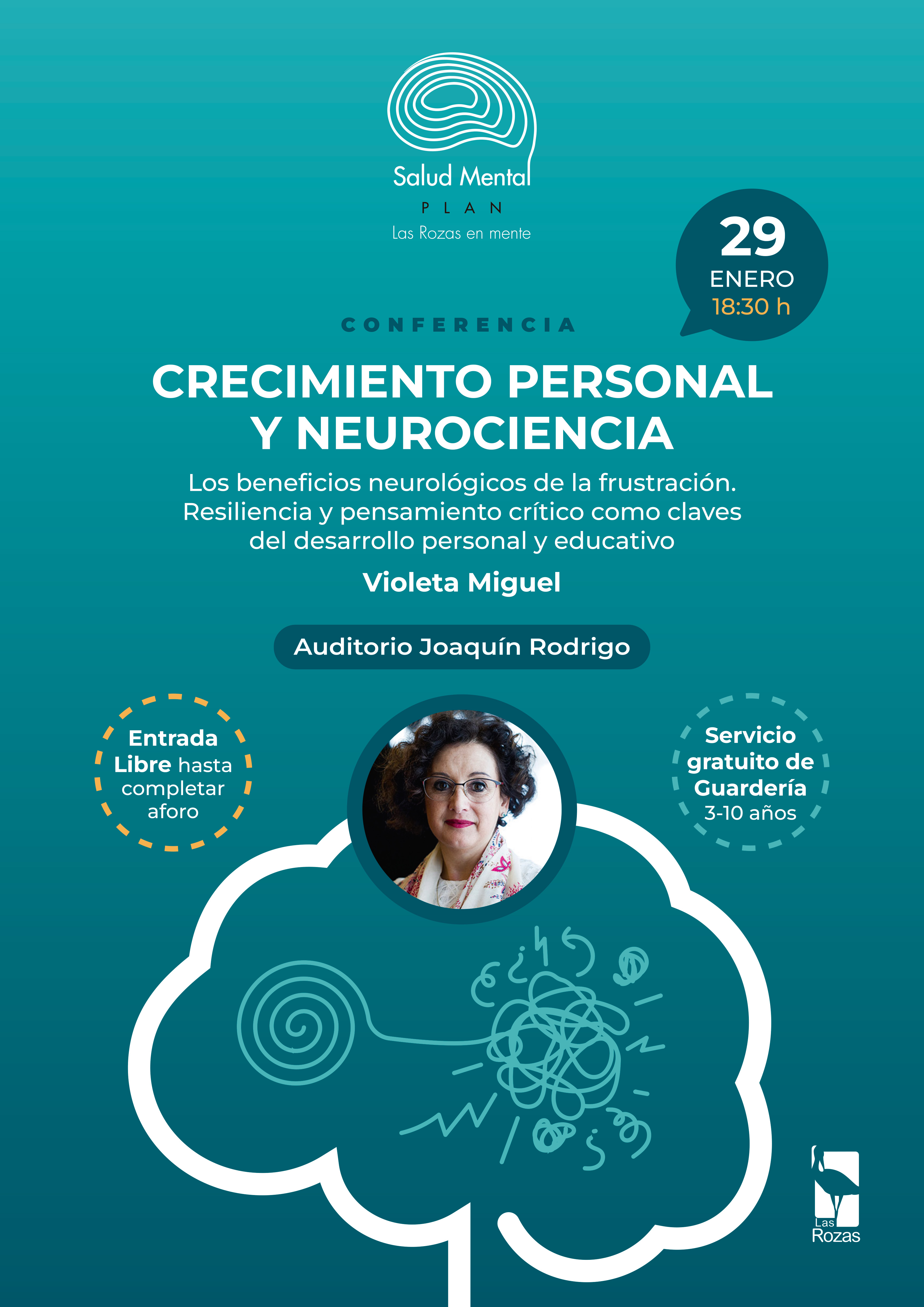 Conferencia enmarcada dentro del Plan de Salud Mental del ayuntamiento, impartida por Violeta Miguel, en la que nos hablará de los beneficios neurológicos de la frustración. Además repasará aspectos tan importantes como la resiliencia y el pensamiento crítico como claves del desarrollo personal y educativo