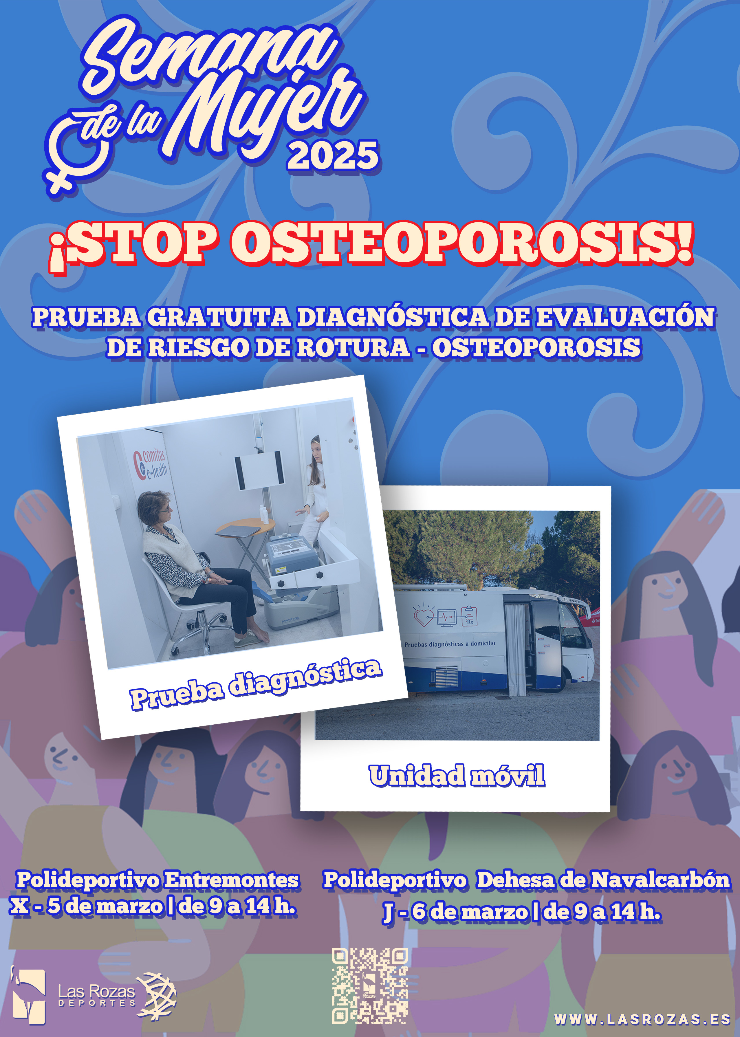 A través de esta campaña la Concejalía de Deportes presenta la campaña ¡STOP OSTEOPOROSIS! con el objetivo de promocionar y concienciar sobre el trabajo de fuerza como medida de prevención y mejora, en mujeres mayores de 50 años con osteopenia/osteoporosis.