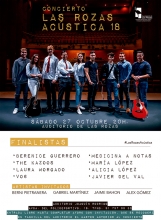 Las Rozas Acústica´18 llega a su concierto final este sábado con la actuación de los mejores artistas seleccionados en la primera fase de esta iniciativa dirigida a jóvenes promesas locales de la música. Berenice Guerrero, Laura Morgado, María López, Javier del Val, Alicia López y los grupos Medicina a Notas, The Kazoos y VO6, subirán al escenario del Auditorio Joaquín Rodrigo y tocarán en directo ante el público a partir de las 20 horas. El Festival contará además con las actuaciones de los artistas invitados Gabriel Martínez, Jaime Bahon, Berni Pietranegra y Alex Gómez.