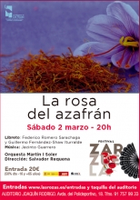 “La rosa del azafrán”, de Federico Romero Sarachaga y Guillermo Fernández Shaw es la primera de las tres obras que se ofrecerán en el Festival de Zarzuela que arranca este fin de semana en La Rozas y que se han programado para los meses de marzo y abril. La Orquesta Martin I Soler, bajo la dirección de Salvador Requena interpretará esta popular obra en el escenario del Auditorio Joaquín Rodrigo el sábado a partir de las 20 horas.