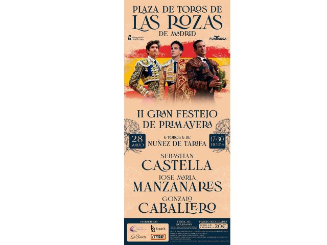 El Centro Multiusos Alcalde Bonifacio de Santiago de Las Rozas acogerá el II Festival de Primavera de Las Rozas, que comenzará con una corrida de toros con un cartel de lujo, que contará con la participación de los matadores de toros Sebastián Castella, José María Manzanares y Gonzalo Caballero, ante un encierro de la acreditada ganadería de Núñez de Tarifa.
