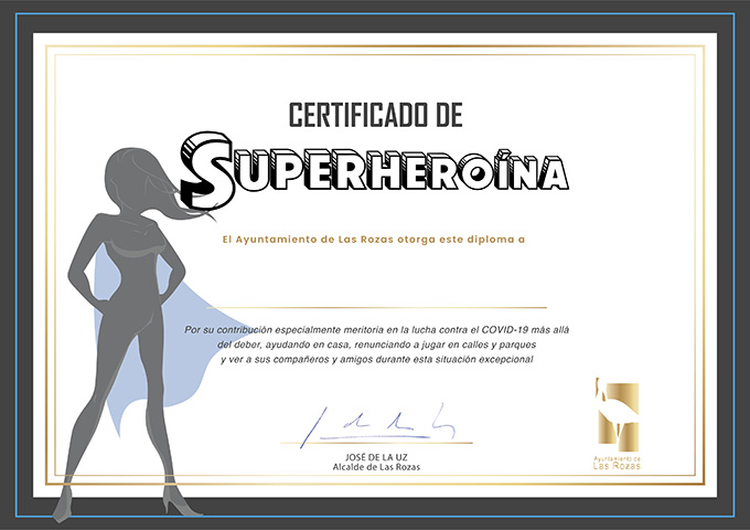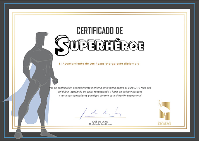 El Ayuntamiento de Las Rozas concede un diploma de “Superhéroes” a los niños de la ciudad, en forma de reconocimiento simbólico al buen comportamiento, esfuerzo y ejemplo que están dando quedándose en casa y ayudando a sus familias a hacer frente a la situación excepcional provocada por el coronavirus.