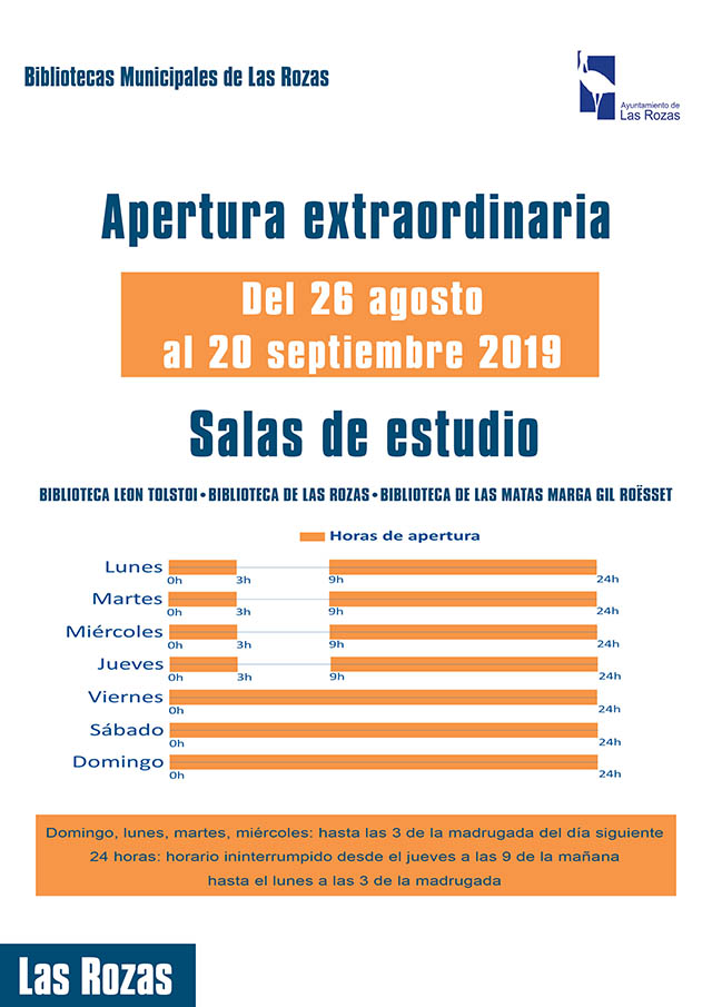 • Las salas de estudio de las tres bibliotecas municipales estarán disponibles en horario ininterrumpido de jueves a domingo